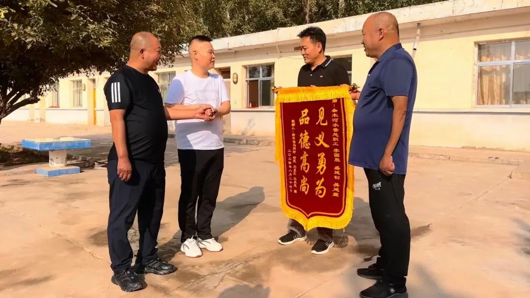 8月28日,被救落水老人家属刘永志特意前来向凉州区杂木水管处总干管理站职工李国胜、盛延钊、吴廷堂三名同志送上锦旗,对他们见义勇为和无私施救表达诚挚的感谢。