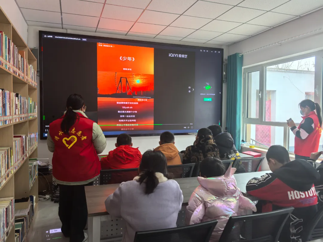 随后大学生志愿者给同学们上了一堂不一样的音乐课。志愿者带领同学们一起欣赏、合唱歌曲《少年》、学习节奏欢快的手势舞,同时告诉同学们,在生活中遇到任何困难都要想起《少年》这首歌带给我们的力量,不畏艰险,勇敢前行。