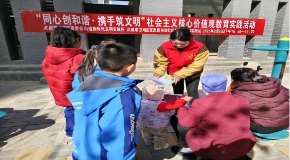 为进一步培育和践行社会主义核心价值观,引导居民树立正确的价值观念,弘扬中华民族优秀传统文化,倡导文明和谐风尚,营造和谐社区氛围。2月28日,凉州区宣武街南湖社区新时代文明实践站组织开展“同心创和谐·携手筑文明”社会主义核心价值观学习教育实践活动。