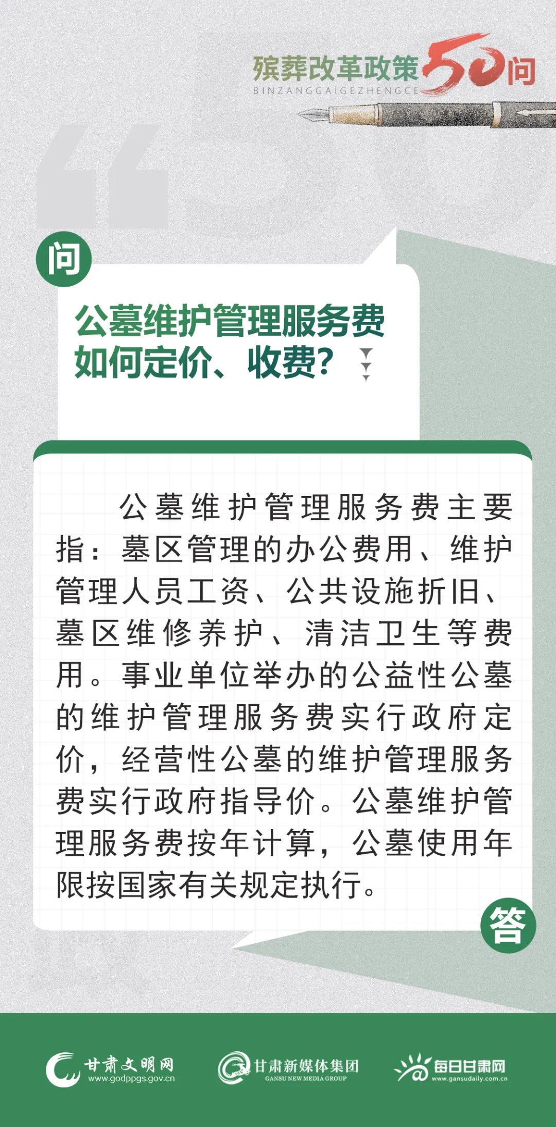 甘肃省殡葬改革政策50问 | 第25问:公墓维护管理服务费如何定价、收费?