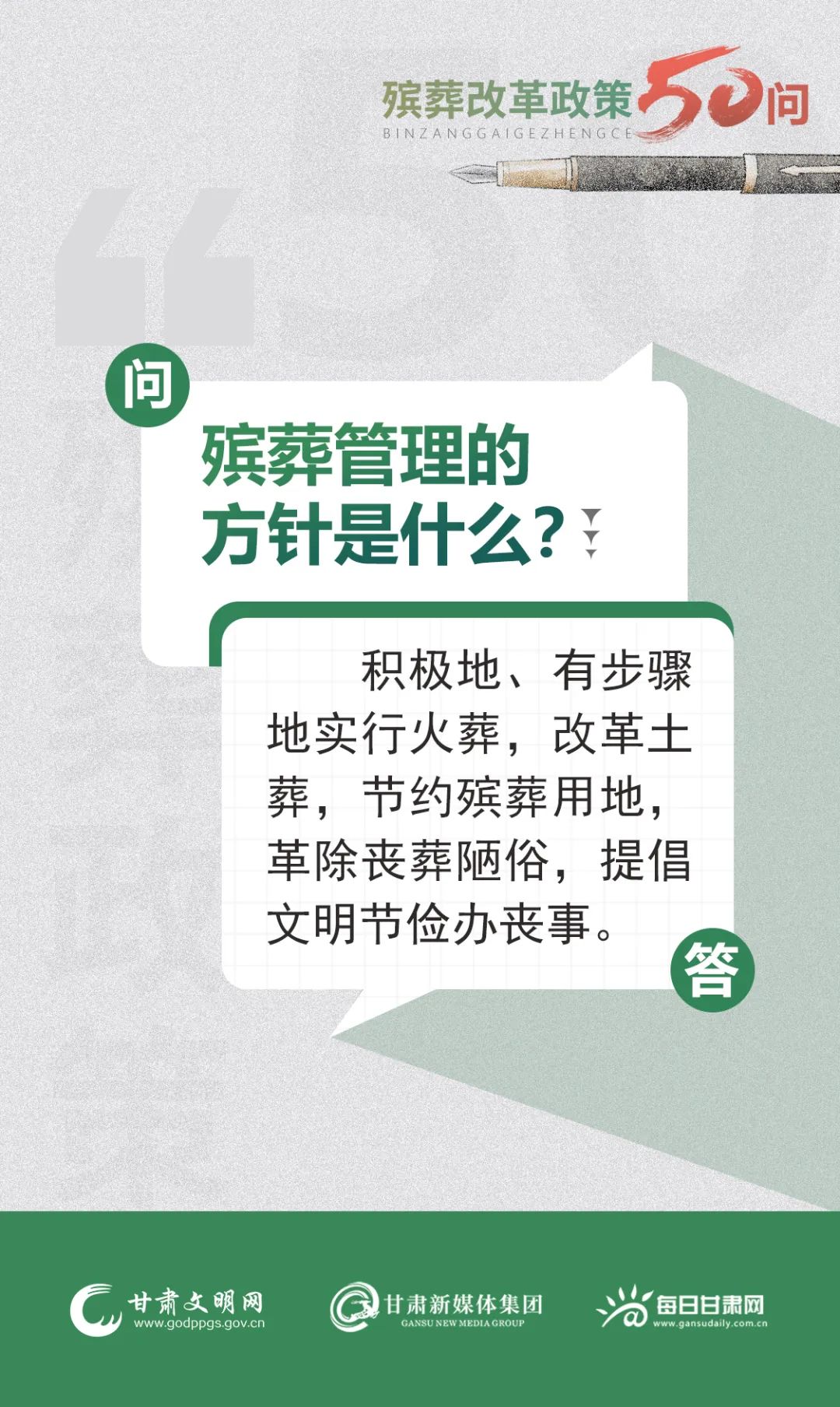 进入新时代,社会进步与文明发展时刻影响着我们的生活方式与价值观念。近年来,甘肃省积极响应国家号召,深入推进殡葬改革和移风易俗,全力构建更加文明、绿色、节俭的现代殡葬服务体系,促进人与自然和谐共生,助力社会可持续发展。为此,省文明办、省民政厅共同推出《甘肃省殡葬改革政策50问》,以一问一答的形式,全面、深入、准确解读推进殡葬改革的重大意义、甘肃省最新政策和具体举措,力求做到政策解读的权威性与实用性并重,让殡葬改革的政策规定真正落到实处、见行见效。
