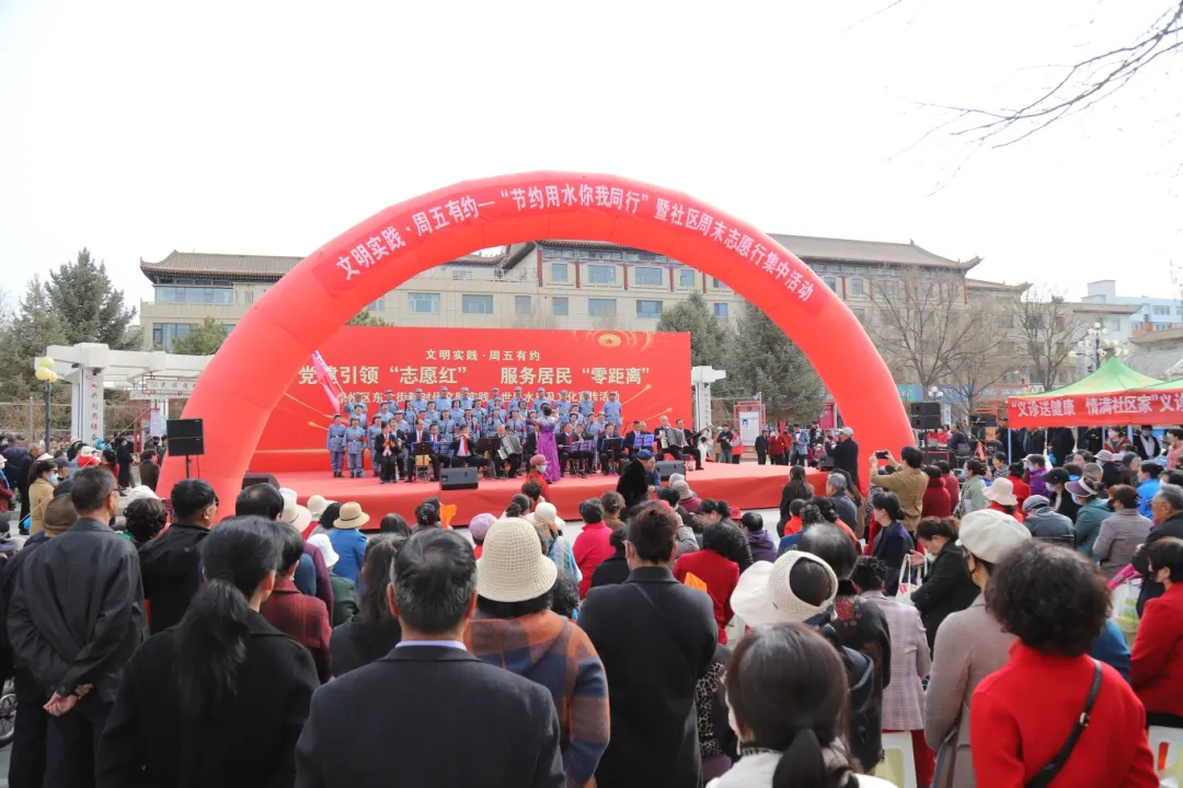 3月21日下午,市、区文明实践办,东大街新时代文明实践所联合组织的“文明实践·周五有约”——“节约用水 你我同行”暨社区周末志愿行集中活动在文庙广场开展。