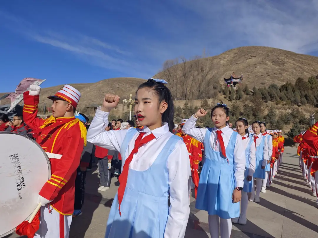在缅怀广场,少先队员们佩戴鲜艳的红领巾,面向队旗,重温了入队誓词,他们怀着崇敬的心情,齐声歌唱了《中国少年先锋队队歌》,表达了新时代少先队员继承先烈遗志,为实现中国梦而努力奋斗的坚定信念。随后,师生们来到红军西路军烈士纪念碑前向革命先烈敬献花篮,鞠躬哀思,表达对革命烈士的深切缅怀和崇高敬意。