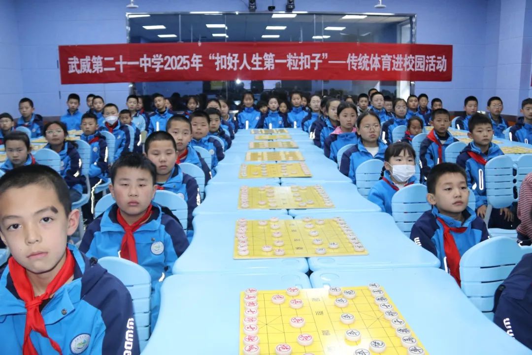 【“三抓三促”进行时】棋韵传承 智启校园—— 武威第二十一中学开展2025年“扣好人生第一粒扣子”传统体育进校园活动