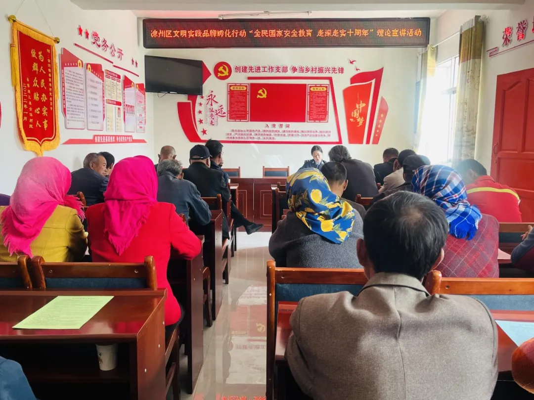 4月15日,区委讲师组、区文明实践办组织“理响凉州”理论宣讲队成员走进金河镇,开展文明实践品牌孵化行动—“全民国家安全教育 走深走实十周年”理论宣讲集中活动。