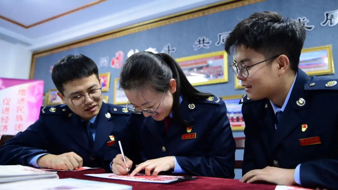 同时,该局组建税收征纳志愿服务队、“青税智援线”志愿服务队,开展扶贫助困、生态保护等公益活动180余次,累计捐赠物资超50万元。同时,还创新推出“税务+非遗”项目,将书法、剪纸等文化融入税收宣传,让精神文明之花在民族地区绚丽绽放。