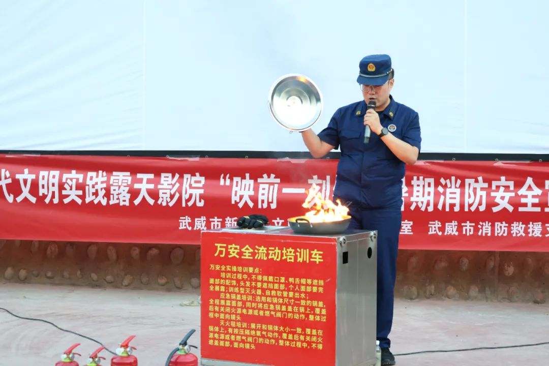 暑期“映前一刻钟”系列活动的诞生,源于对群众文化生活需求的深度洞察。市文明实践办在前期工作中发现,露天影院的观影等待时间常被群众视为“空窗期”,而暑期群众对安全防护、法律知识、健康养护等实用内容的需求尤为迫切。基于此,首轮活动精准锁定“安全”“法治”“健康”三大核心板块,构建起与群众生活同频共振的主题矩阵。消防安全宣传专场里,消防救援人员带着灭火器、防护面罩等装备来到现场,将“火灾逃生”从书本理论转化为“弯腰捂口鼻”“1提2拔3握4压”的实操演示。当孩子们看到消防员用锅盖扑灭着火的油锅时,眼中闪烁的不仅是好奇,更是安全意识萌芽的微光。活动后播放的《烈火英雄》,让银幕内外的“火焰蓝”形成跨越时空的呼应,更让“安全第一”的理念深植人心。