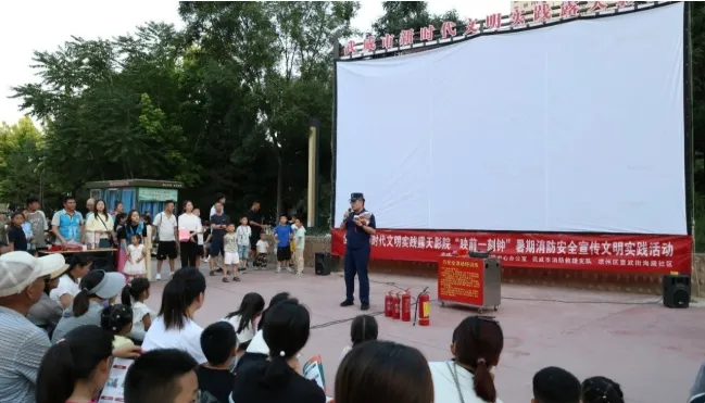消防安全宣传专场里,消防救援人员带着灭火器、防护面罩等装备来到现场,将“火灾逃生”从书本理论转化为“弯腰捂口鼻”“1提2拔3握4压”的实操演示。当孩子们看到消防员用锅盖扑灭着火的油锅时,眼中闪烁的不仅是好奇,更是安全意识萌芽的微光。活动后播放的《烈火英雄》,让银幕内外的“火焰蓝”形成跨越时空的呼应,更让“安全第一”的理念深植人心。