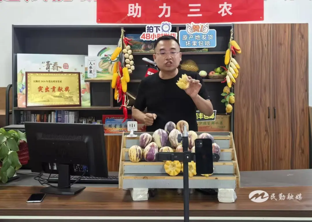 张鹏将田间地头打造成实景直播间,用镜头真实记录农产品的生长环境与采摘全过程。他极具感染力的讲解风格、朴实真诚的沟通态度,让直播间充满烟火气,不仅吸引了大量粉丝关注,更让民勤农特产品的美名通过网络传遍大江南北。